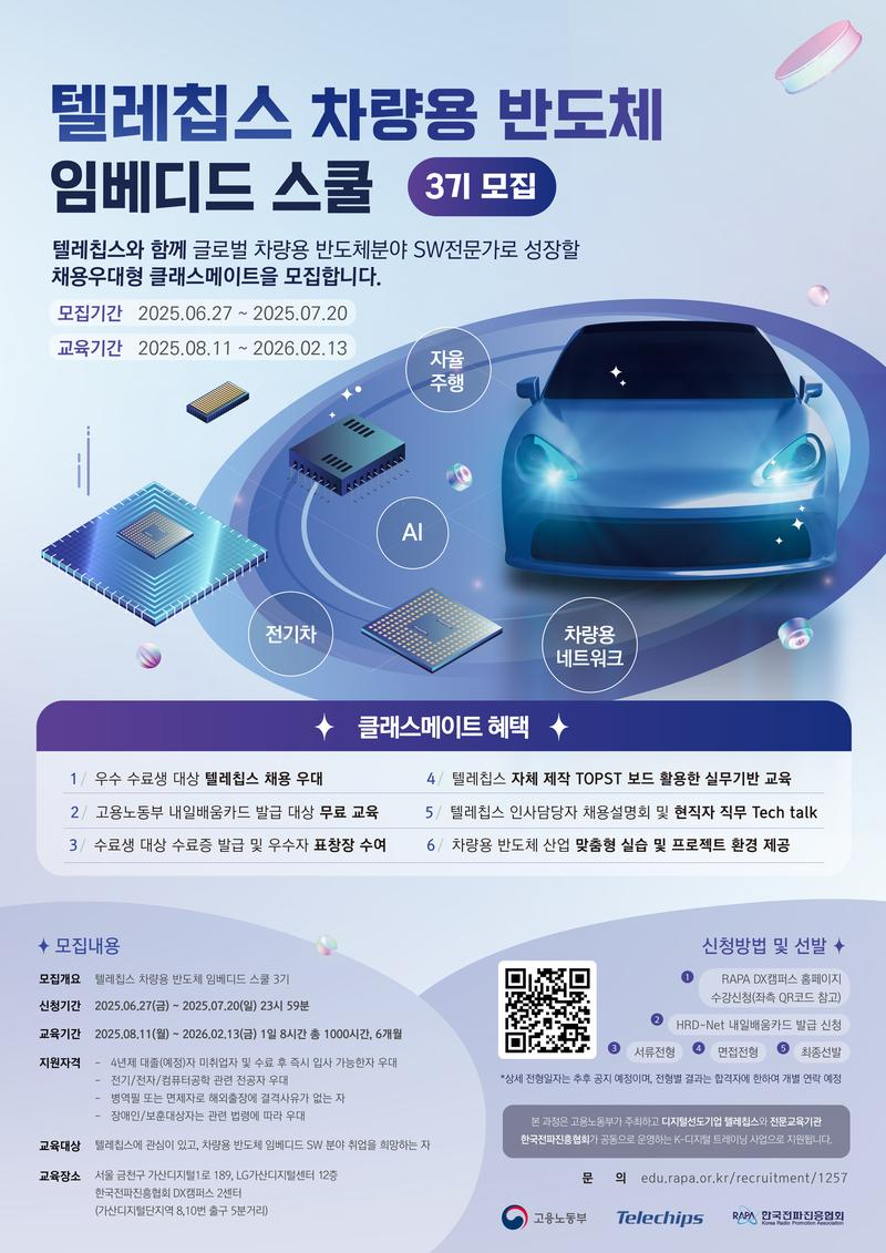[텔레칩스, 한국전파진흥협회] 차량용 반도체 임베디드 스쿨 2기 (~7/20)